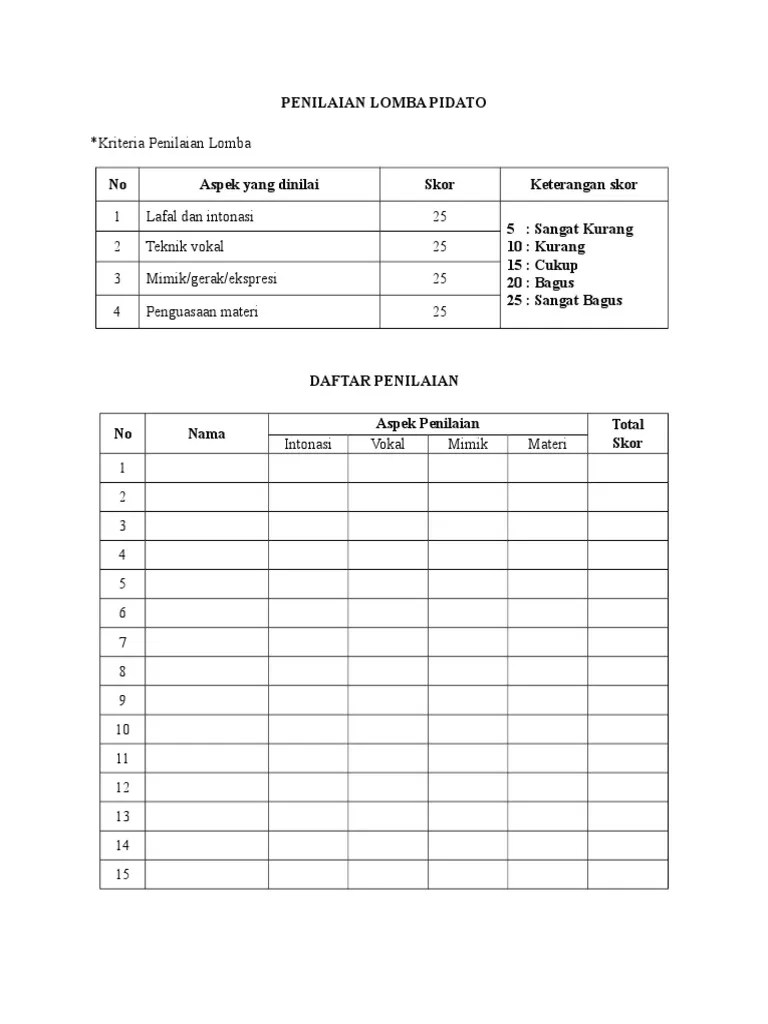 Tata Cara Penilaian Lomba Puisi / Kriteria Penilaian Uji Praktek Cipta Dan Baca Puisi - Penghayatan dan penjiwaan · 2.